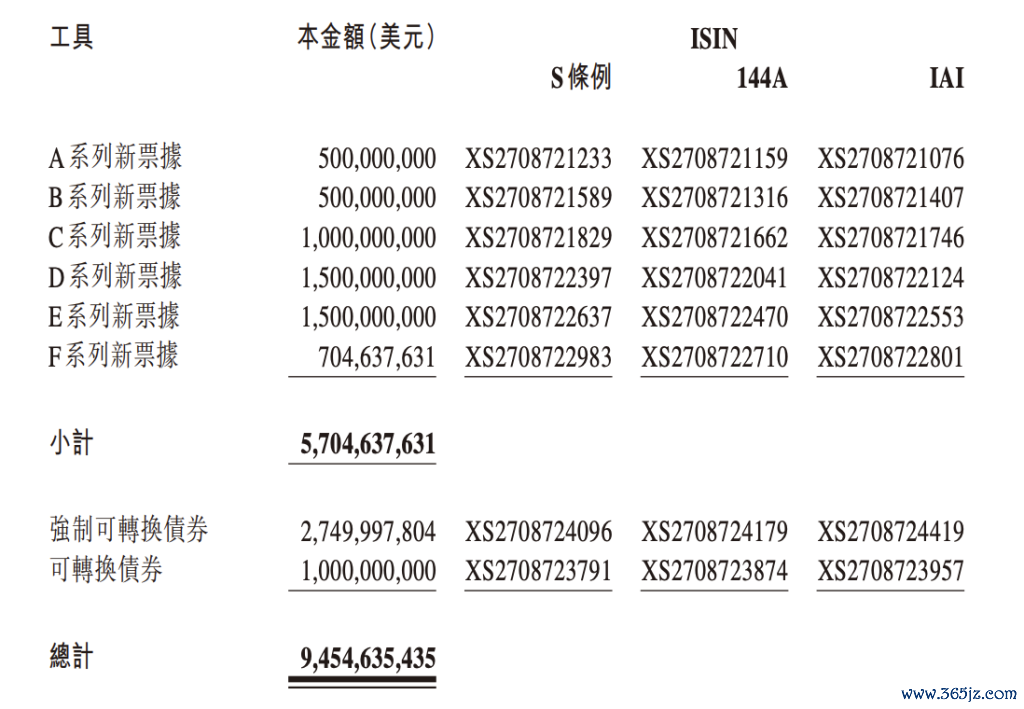 具体来看融创中国作为部分重组对价发行的工具(包括新票据、 强制可转换债券、可转换债券)如下: